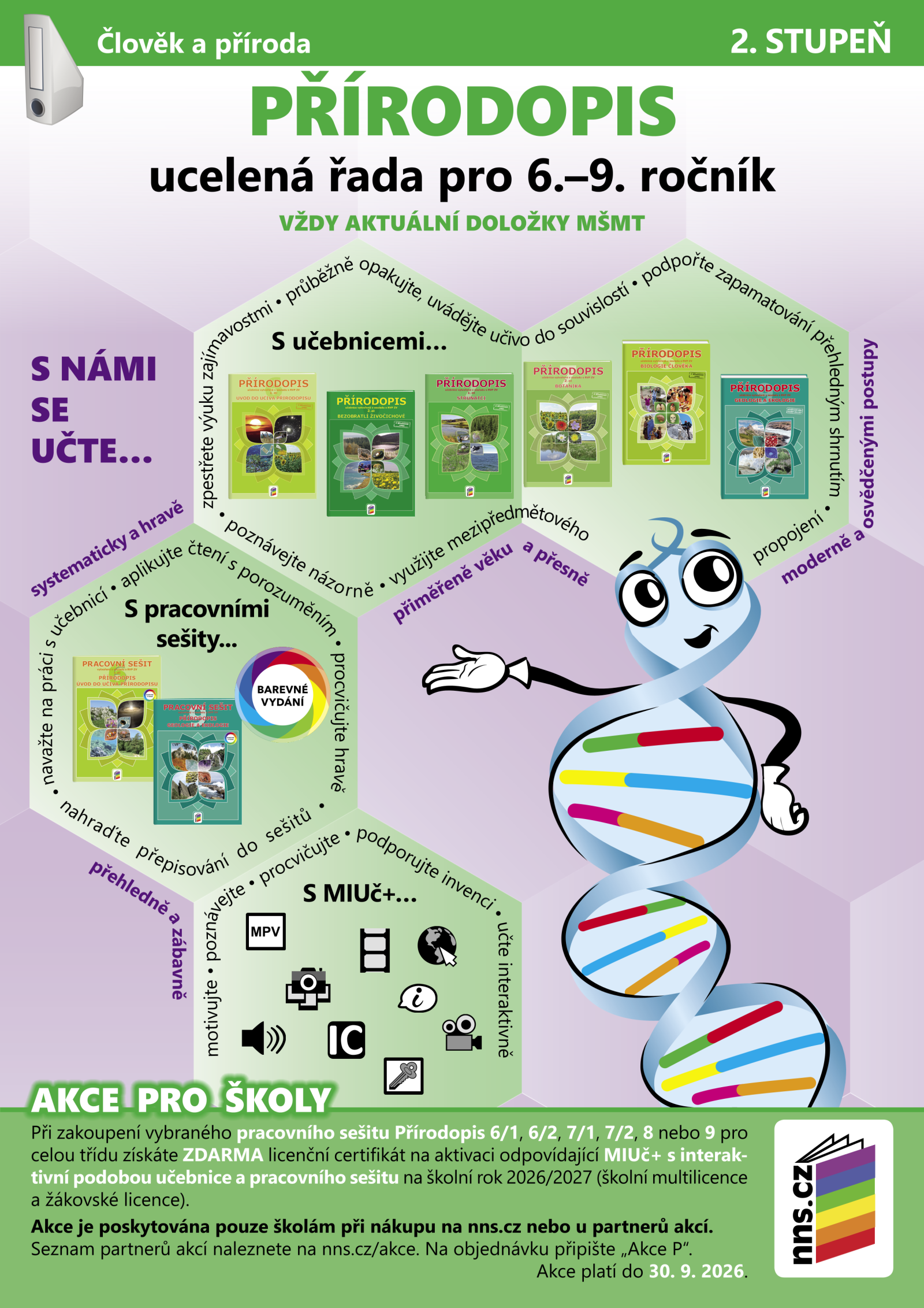 Vydáváme ucelenou řadu učebnic, pracovních sešitů a MIUč+ přírodopisu, které jsou koncipovány v souladu s RVP ZV. Učebnice a pracovní sešity mají platné schvalovací doložky MŠMT.