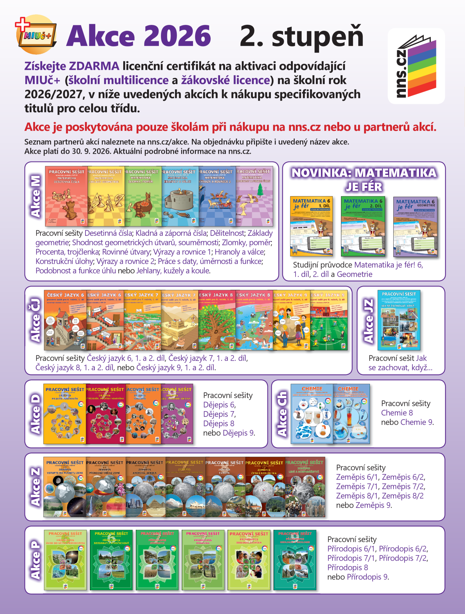 Akce je poskytována pouze školám při nákupu na nns.cz nebo u partnerů akcí. Seznam partnerů akcí naleznete na nns.cz/akce. Na objednávku připište i uvedený název akce.