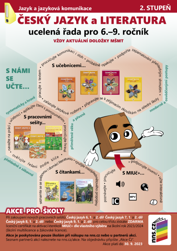 Učebnice pro 6., 7. a 8. ročník mají nově prodlouženou doložku do roku 2031, akcentují komunikaci a mediální výchovu prostřednictvím nového oddílu a průběžných aktivit, jsou tak ideální volbou pro pořízení v rámci akce.