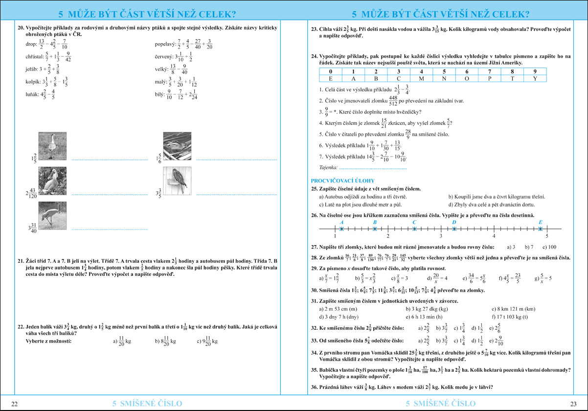 V každém pracovním sešitě je zařazeno takové množství úloh, aby každý žák našel dostatek materiálu k procvičení látky – od velmi jednoduchých úloh až po úlohy standardní obtížnosti. Většina úloh je otevřených, najdete tu však i uzavřené úlohy s nabídkou odpovědí. Na závěr každé kapitoly jsou zařazeny další úlohy na procvičování,úlohy zajímavé a nadstandardní pro nadané žáky. Není třeba doplňovat dalšími sbírkami úloh. Každý pracovní sešit je zaměřen na jednu vzdělávací oblast.